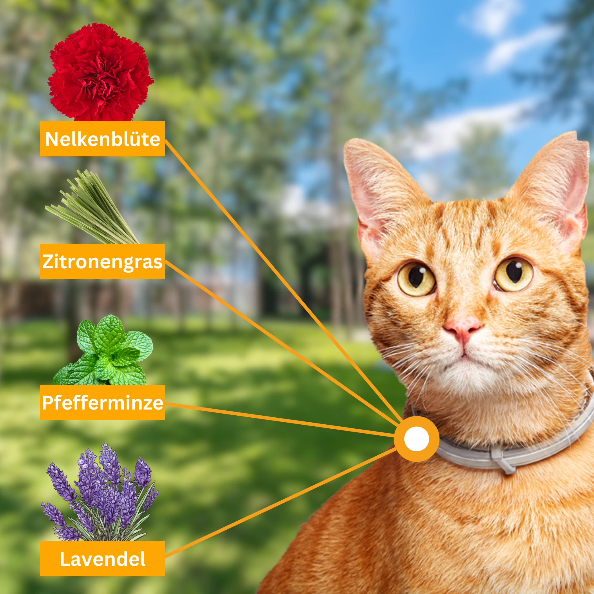 Durch die kontinuierliche Freisetzung der natürlichen Wirkstoffe bleibt deine Samtpfote bei jedem Abenteuer – ob im Garten, auf dem Balkon oder in der Wohnung – sicher vor unerwünschten Blutsaugern.