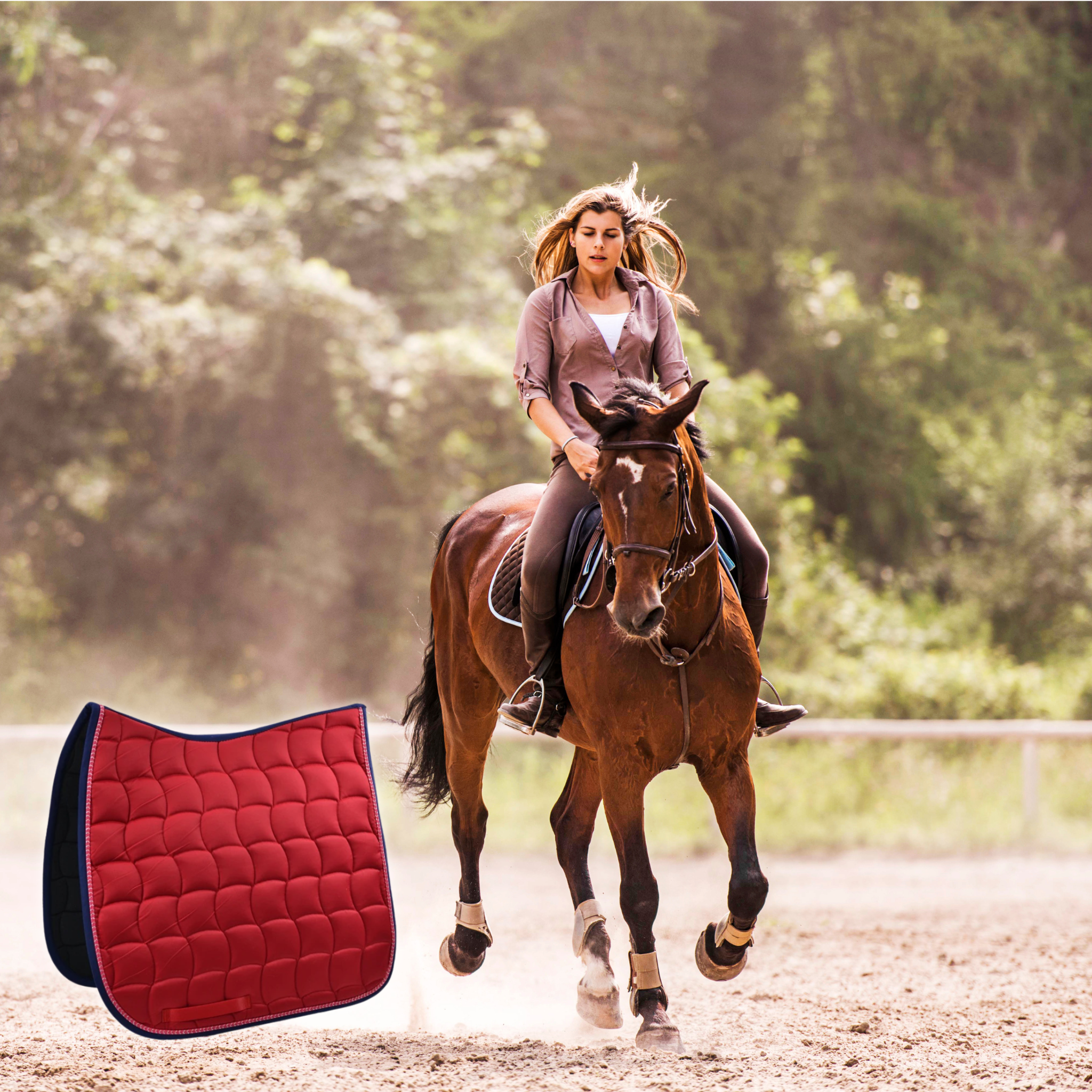 Ja, die Decke ist für die meisten Englisch- und Dressursättel geeignet. Ihre angepasste Form sorgt für einen sicheren und bequemen Sitz – sowohl im Training als auch auf dem Turnier.