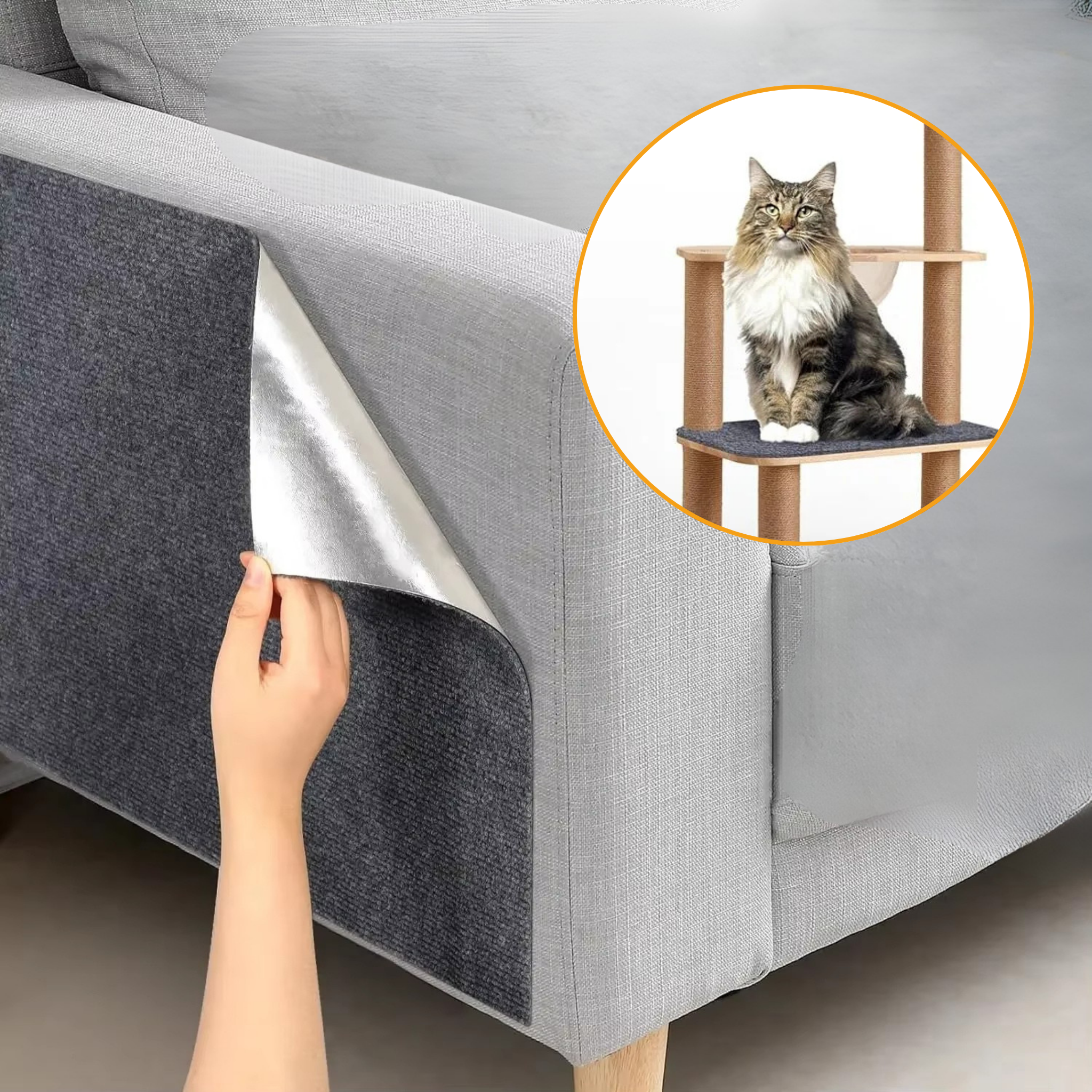 Mit dem universellen Katzen-Kratzschutz von FellFreund schützt du deine Möbel zuverlässig – während deine Katze weiterhin nach Herzenslust kratzen kann!