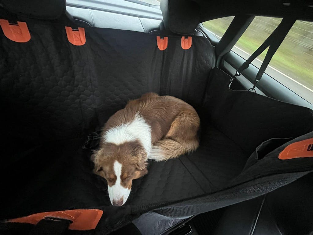 Yes, the FellFreund Backseat Protector is absolutely safe for your dog. It is 100% compliant with road regulations and allows you to buckle your dog securely with a seat belt. The sturdy panels prevent sagging and provide a non-slip, firm surface that gives your dog support and comfort during the ride. Unlike conventional protectors with the “potato sack effect,” this one stays in shape, preventing slipping and feelings of insecurity for your dog. This way your four-legged friend is well-protected and feels comfortable at the same time.