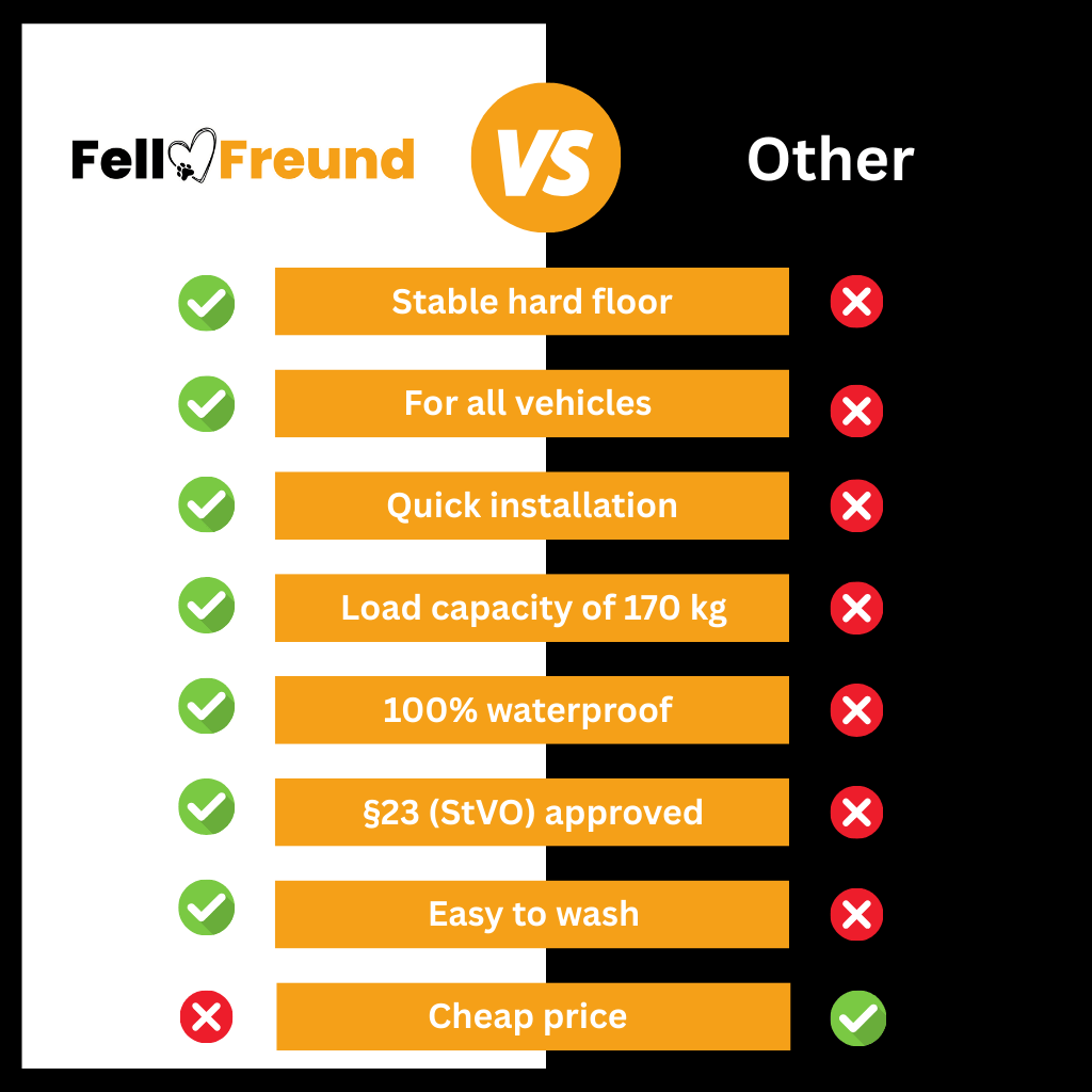 The main reason is the lack of solid panels, which double the space for your dog in the back area and also prevent them from falling into the gap while driving. In addition, there’s a table above showing what makes our FellFreund Backseat Protector so special.
