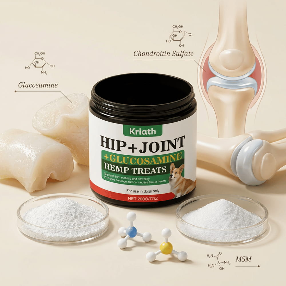 Carefully selected ingredients such as glucosamine hydrochloride, chondroitin sulfate, and MSM (dimethyl sulfone) help promote cartilage regeneration, strengthen joint structure, and maintain mobility.