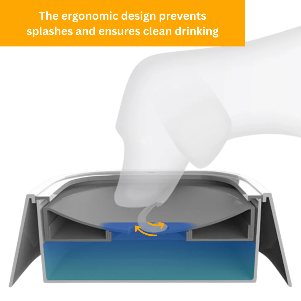 Our water bowl features an ergonomically adapted design that prevents wet saliva and promotes a clean drinking experience for your pet.