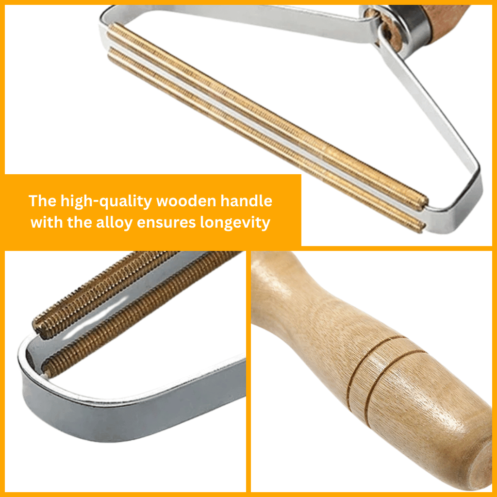 The FellFreund Pet Hair Remover features a sturdy wooden handle combined with a durable alloy for maximum longevity and reliability.