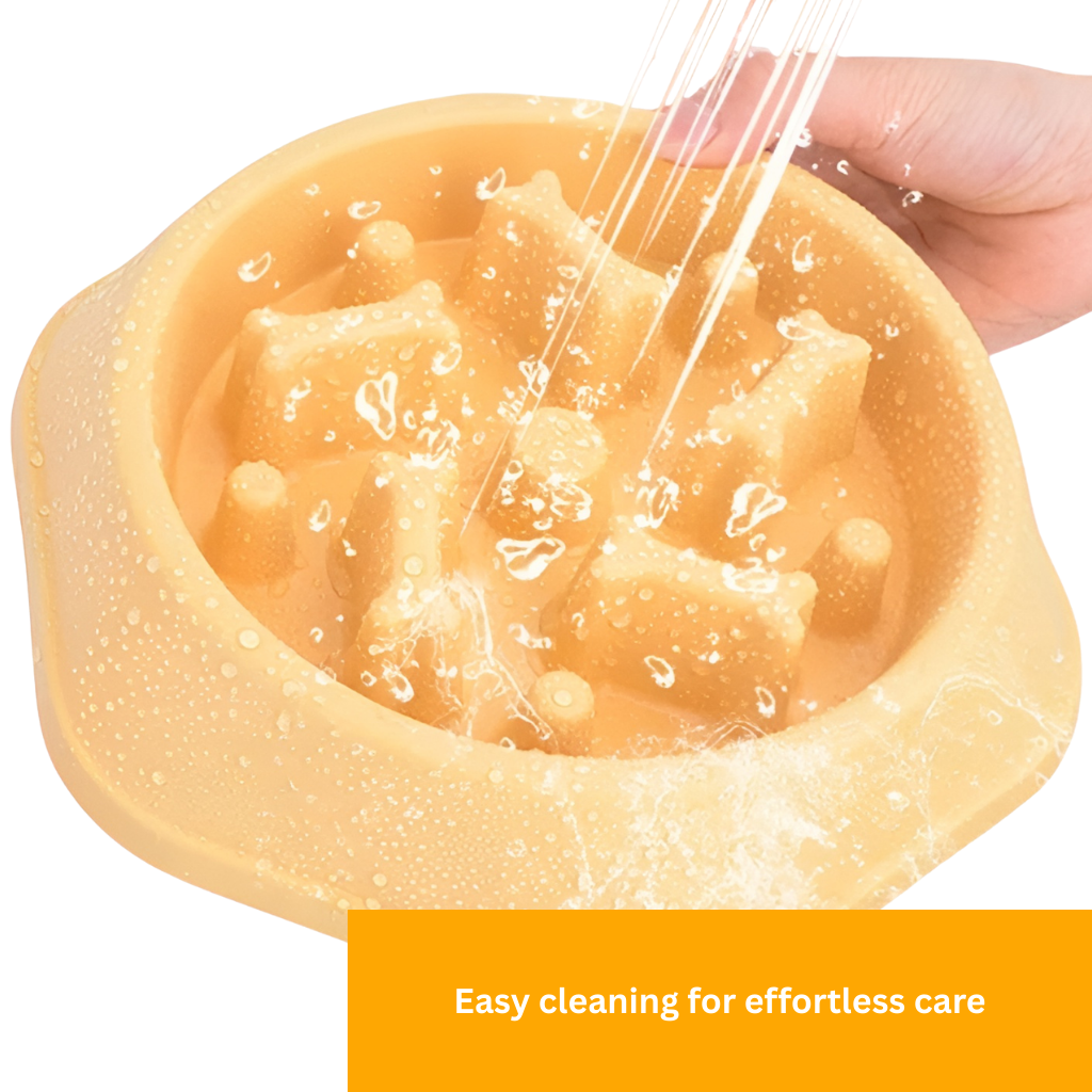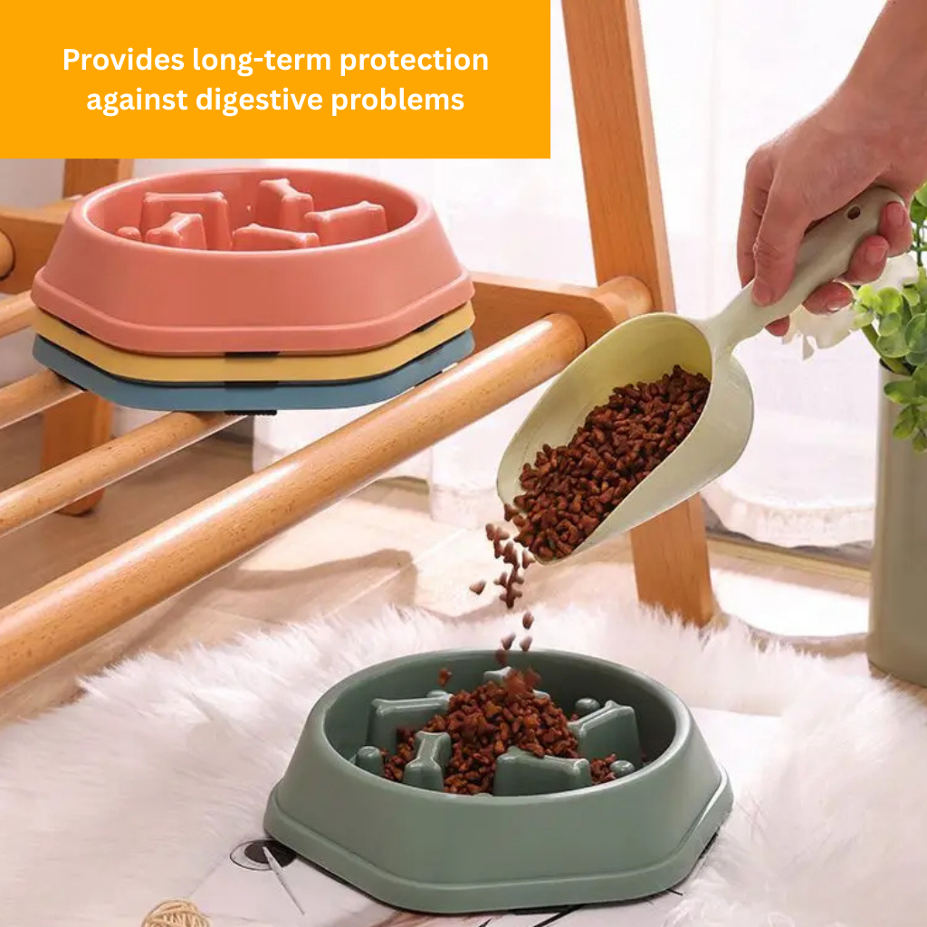 With its special design, the bowl encourages slow eating, which prevents excessive gulping and reduces the risk of choking and stomach discomfort.